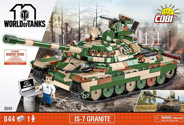 Anlässlich des 10. Jahrestages des Starts von World of Tanks haben COBI und Wargaming ein spezielles Set vorbereitet. Der Granittank IS-7 mit einer charakteristischen Tarnung.