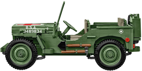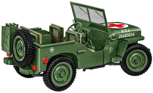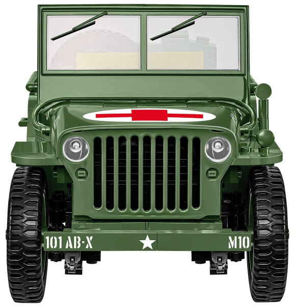 Der lizenzierte Willys Jeep erschien als weiterentwickeltes Modell im Maßstab 1:12 und passt perfekt zu den Feierlichkeiten zum 80. Jahrestag der Landung der Alliierten in der Normandie! Aufgrund ihrer Zuverlässigkeit und Mobilität wurden einige Fahrzeuge zur Evakuierung von Verwundeten und zum Transport von Sanitätern eingesetzt. Sie zeichneten sich durch das Fehlen von Waffen und ein großes rotes Kreuz auf der Motorhaube aus! Das beliebteste Geländefahrzeug der Welt wurde sorgfältig aus COBI-Bausteinen entworfen und besteht aus 1.131 Elementen. Speziell für dieses Set wurden völlig neue Elemente geschaffen, deren Details an das Erscheinungsbild eines historischen Fahrzeugs erinnern. Der riesige Block-Willys MB verfügt über einen charakteristischen Grill und eine Motorhaube, realistische drehbare Räder, ein funktionierendes Lenkrad, Innendetails und einen nachgebildeten Motor. Die Räder mit Gummibereifung drehen und drehen sich und können beim Spielen bewegt werden. Die Bausteine sind hochwertig mit historischen Fahrzeugmarkierungen bedruckt. Das Set ergänzt perfekt die sehr umfangreiche Historical Collection WWII-Serie von COBI! Bauen Sie Geschichte, Stein für Stein!
